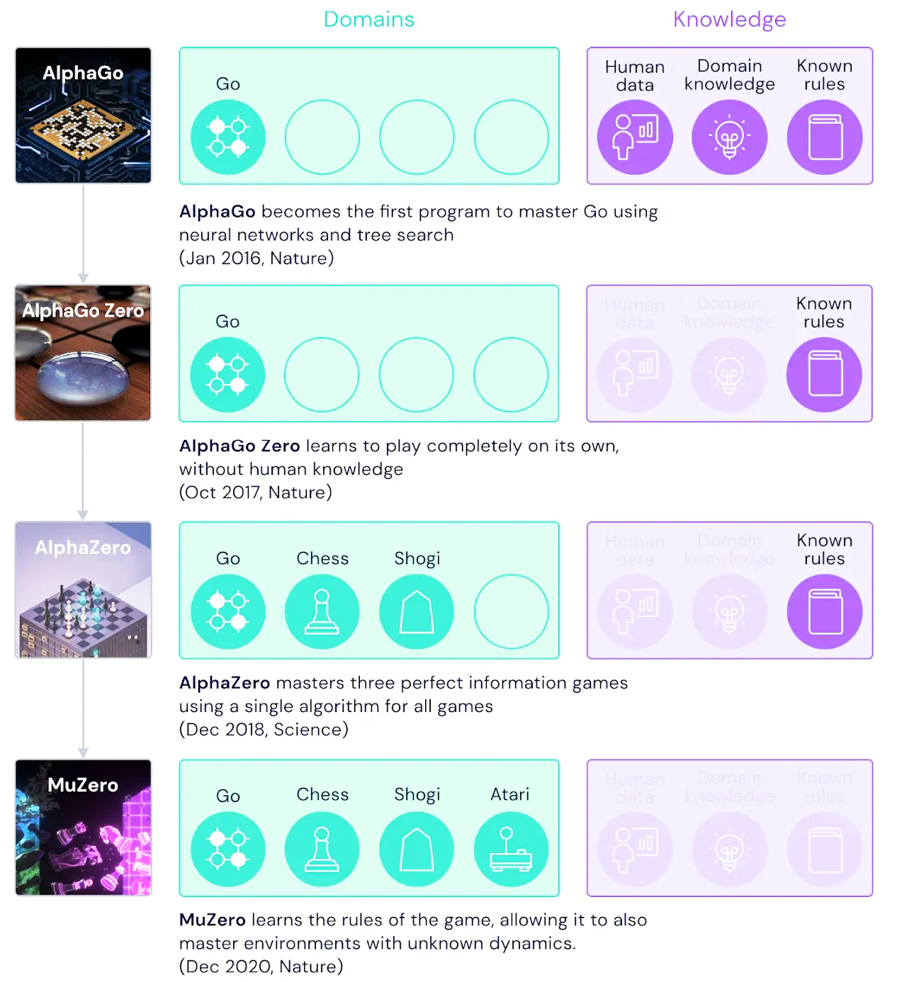 | 적용 범위 | 보드게임 (바둑, 체스 등) | 보드게임 + 비디오 게임(아타리) + 현실 세계 |