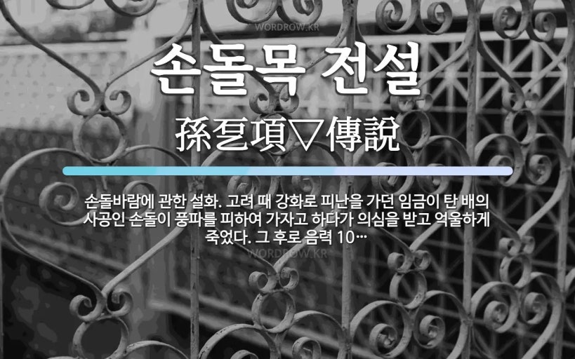 손돌목 설화는 한국 설화 가운데서도 역사적 사건과 민간의 기억이 결합된 대표적인 이야기로 꼽힌다. 이 설화는 단순한 괴담이 아니라, 억울한 죽음이 어떻게 집단의 기억으로 남는가를 보여주는 서사다.