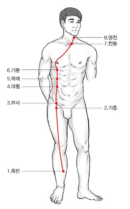 - 음유맥(내면 보호): 종아리 안쪽(축빈혈)에서 시작해 허벅지 안쪽을 타고 올라가 아랫배와 가슴, 목구멍 근처에서 임맥과 만납니다. 우리 몸의 깊숙한 곳을 수직으로 관통합니다.