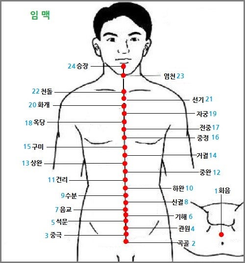 임맥은 우리 몸의 정중앙 앞면을 따라 흐릅니다.