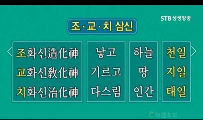 • 본체: 일신 (One God / Cosmic Spirit)